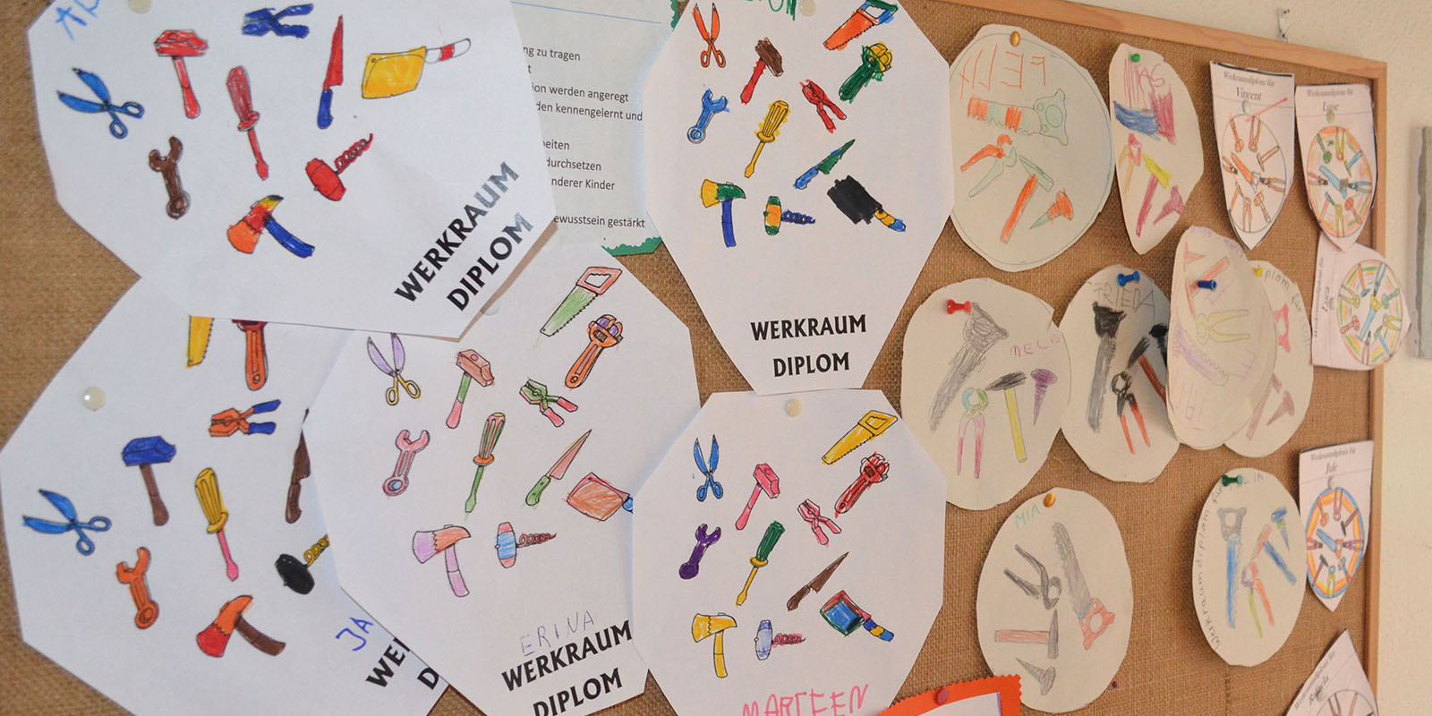 Die Kinder werden in verschiedenen Spielbereichen innerhalb (Flur, Bücherei, Werkraum) und außerhalb des Hauses (Sandbereich, Barfußweg, Weidenhäuser) selbst tätig. Ihre Neugierde und Wissbegierde ist Antrieb und wird erhalten und entwickelt. Diese aktive Auseinandersetzung der Kinder mit ihrer Umgebung, Spielen, Materialien, Eindrücken ist uns wichtig, da sich hier Kinder als handlungsfähig begreifen.