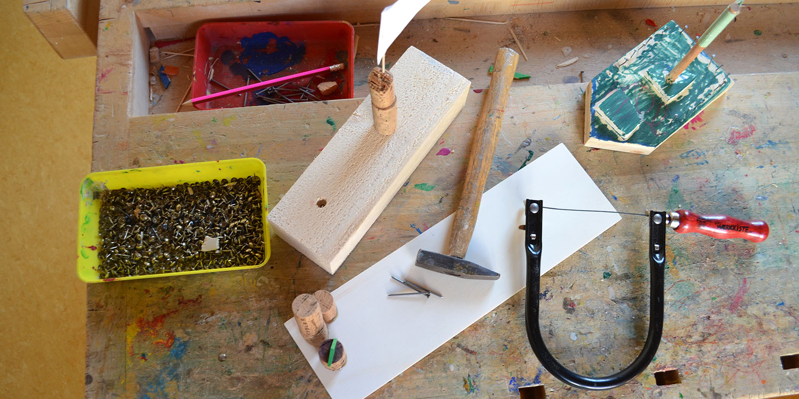 Um die Freude der Kinder an kreativen Aktionen anzuregen, arbeiten wir wenig mit Schablonen, stellen verschiedene Materialien, Werkzeuge, Instrumente zur Verfügung und eröffnen Kindern so immer wieder neue Erfahrungsfelder.